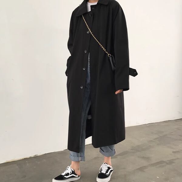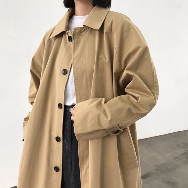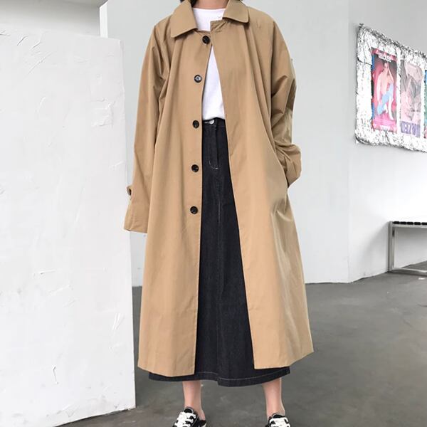 春と秋に最適なミッドレングスのスリムコートです。シンプルで洗練されたデザインが特徴で、体のラインを美しく引き立てます。軽やかな素材で着心地が良く、さまざまなスタイルに合わせやすい万能な一着です。