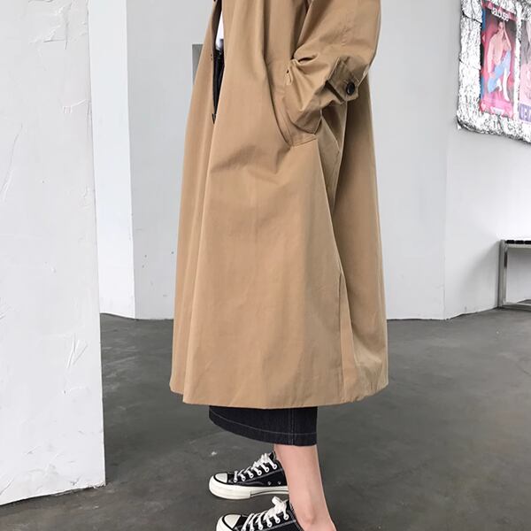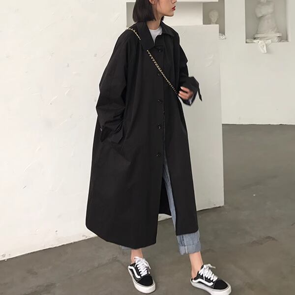 2カラー レディース トップス プルオーバー コート アウター 上着 レトロコート ウィンドブレーカー ロングコート ステンカラーコート 膝下 ロング 長袖 ステンカラー ストレート スマート ボタン きれいめ シンプル カジュアル 上品 レトロ ガーリー ルーズ フォーマル クラシカル 爽やか 無地 春 秋 男女兼用 ユニセックス 10代 20代 30代 通勤 イベント ガーデン ショッピング 普段使い 着瘦せ お腹カバー