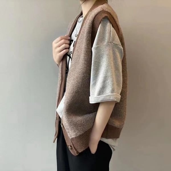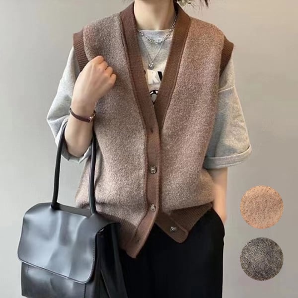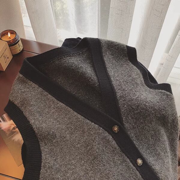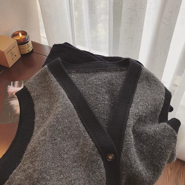 レトロニットベストは、春と秋にぴったりの薄手のVネックルーズアウターです。シンプルなデザインで、カジュアルにもフォーマルにも合わせやすく、様々なスタイルに対応します。快適でおしゃれな一枚です。