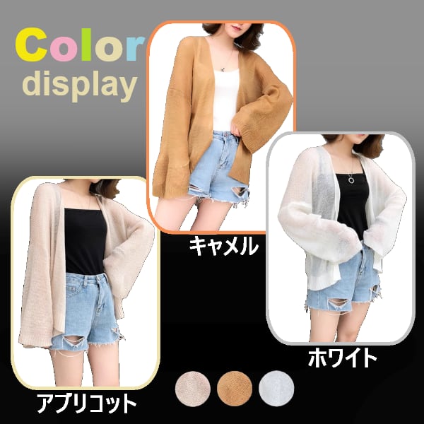3色展開レディース トップス カーディガン ミドル丈 長袖 フレアスリーブ 襟なし ノーカラー セミフレア ストレート フェミニン ふわふわ 伸縮性 薄手 かわいい 大人可愛い きれいめ カジュアル 上品 おしゃれ こなれ感 ガーリー ルーズ エレガント オフィスカジュアル 無地 20代 30代 オフィス 通勤 イベント ガーデン ショッピング 着回し 着瘦せ 日焼け対策 ゆったり