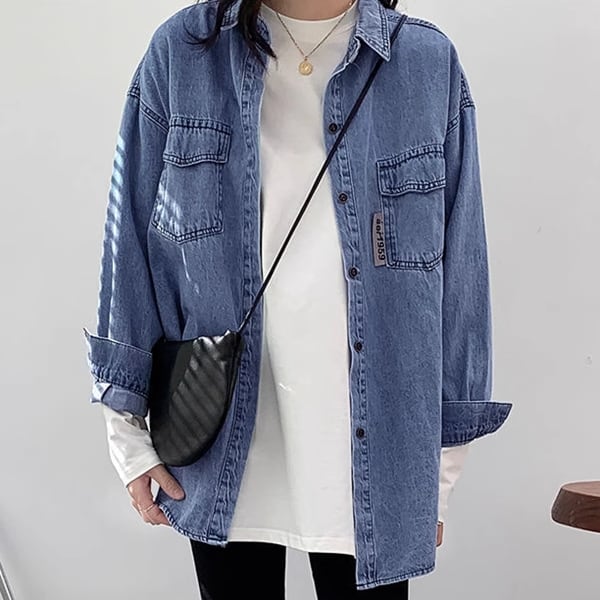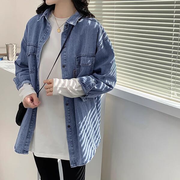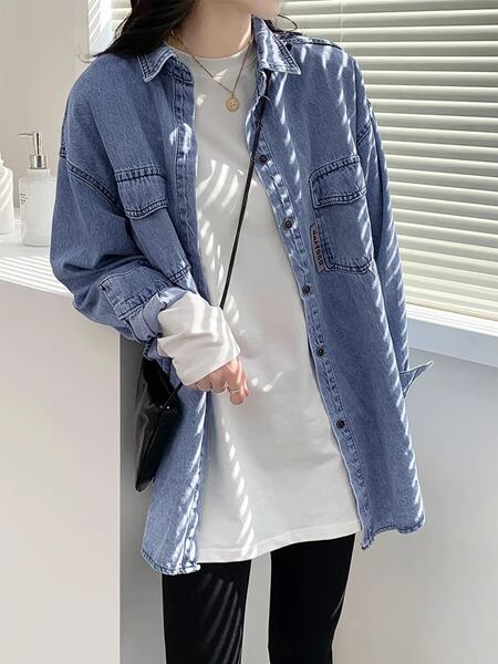 おしゃれなデニムシャツ レディース トップス ジャケット シャツ ブラウス デニム Gジャン 長袖 ポロカラー ソリッドカラー ストレート ポケット ボタン アメカジ パッチ ステッチ ブルーデニム 薄手 綿 大人可愛い シンプル カジュアル かっこいい ルーズ アメリカン リラックス オフィスカジュアル 無地 10代 20代 オフィス 通勤 通学 アウトドア キャンプ イベント ガーデン ツーリング ゆったり