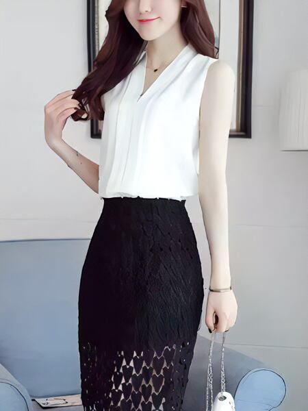 ノースリーブ V ネックシフォンシャツ 香港スタイル レディース トップス シャツ ベスト 袖なし ノースリーブ Vネック スリム 細身 ストレート シフォン かわいい 大人可愛い きれいめ 上品 おしゃれ ガーリー クール エレガント フォーマル 爽やか 涼しげ 無地 夏 20代 30代 通勤 通学 パーティー イベント レストラン ホテル ショッピング カフェ コーデ 着回し 白 ホワイト