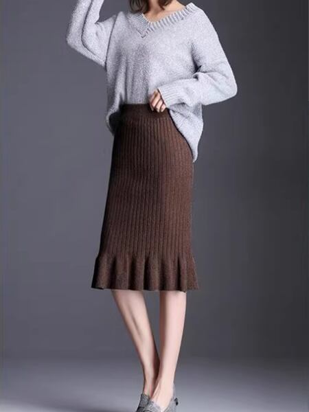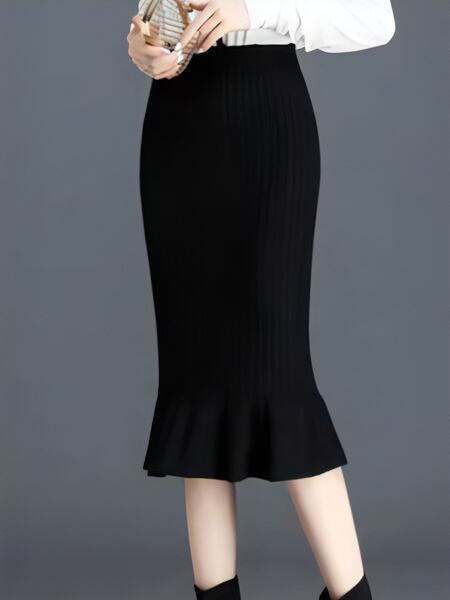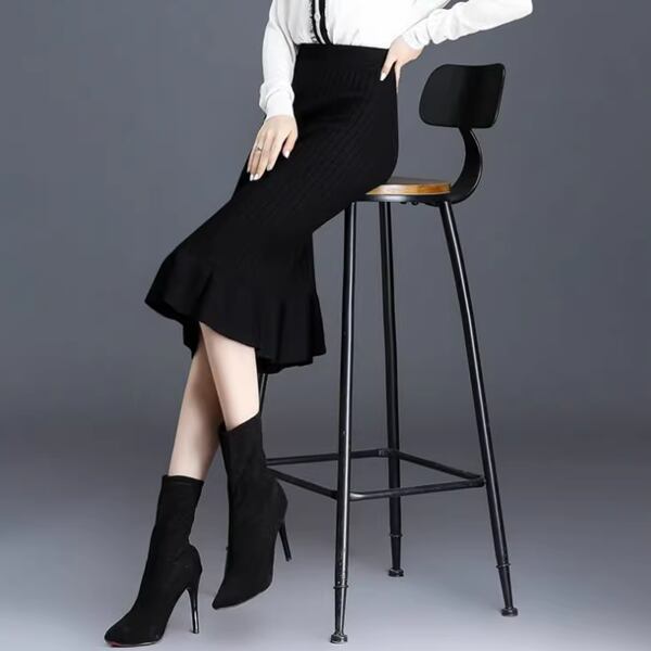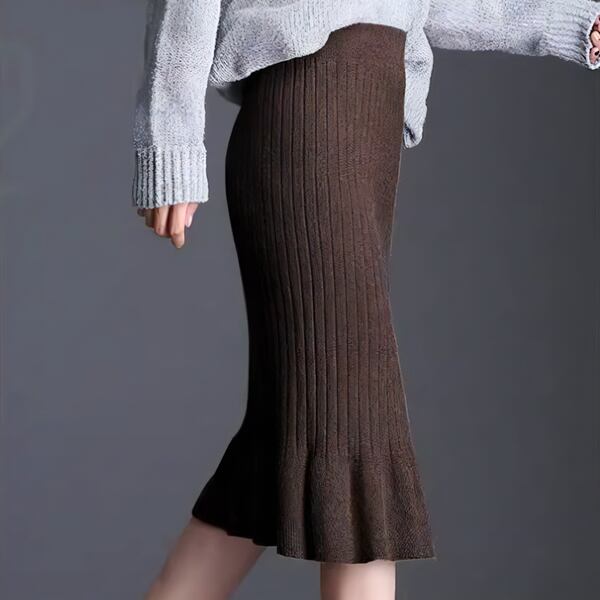 ウールニット素材のハイウエストワンステップスカートです。ヒップをカバーしつつ、フィッシュテールデザインで優雅なシルエットを演出。ミッドレングスで上品に仕上がり、どんなシーンにもぴったりな一着です。