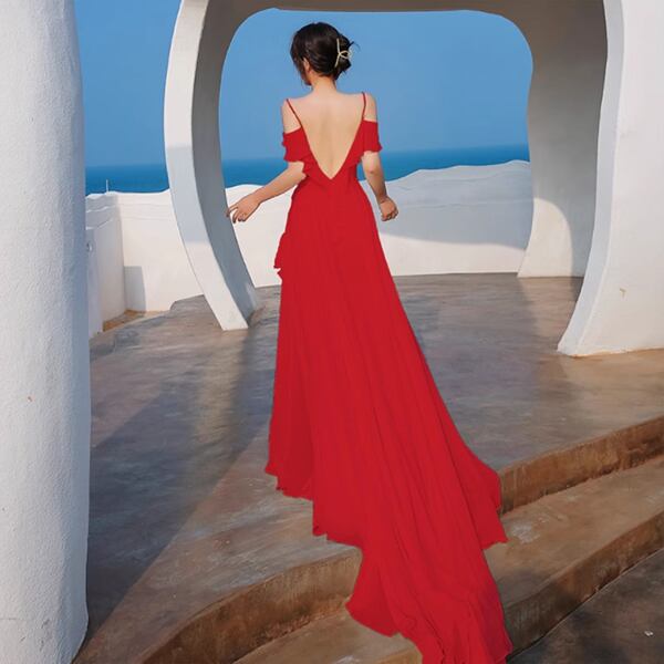 2カラー シーサイドバケーション ロングテールビーチドレス レディース ドレス ワンピース パーティードレス カラードレス パーティー 結婚式 ロング ノースリーブ オフショル サスペンダー 肩出し フレア 肌見せ きれいめ 大人可愛い 上品 おしゃれ エレガント 細身 Aライン ハイウエスト 海 プール ビーチ バカンス フェミニン 無地 パーティー リゾート ホテル ガーデン レストラン 食事会 20代