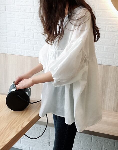 レディース トップス カットソー ミドル丈 5分袖 ボリューム袖 ランタンスリーブ Uネック 襟なし フェミニン ふわふわ リネン 麻 かわいい カジュアル こなれ感 ラフ ガーリー ファンシー リラックス 無地 夏 デート 海 楽ちん 体型カバー 普段使い モテ ビッグ ゆったり ゆる フリーサイズ オーバーサイズ ビッグシルエット ゆったりウエスト ホワイト ピンク グリーン