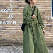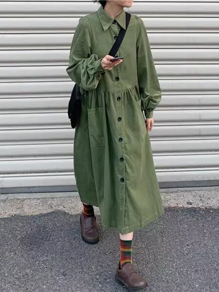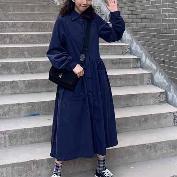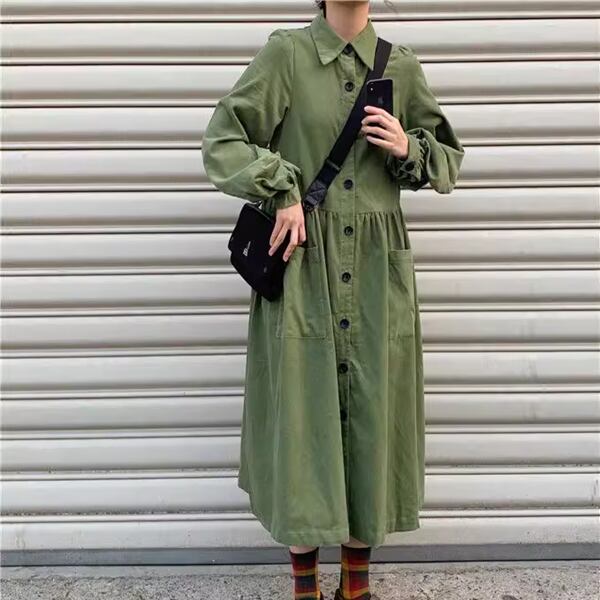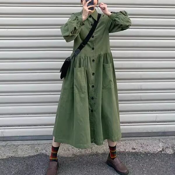 2カラー 秋と冬の痩身スカートドレス/シャツワンピース レディース ワンピース ドレス シャツワンピ フレア フレアスカート ロング 長袖 バルーン袖 ポロカラー ワイド フレア Aライン フェミニン タックプリーツ 前開き ボタン 大人可愛い シンプル カジュアル 上品 かっこいい ルーズ エレガント オフィスカジュアル 無地 秋 冬 20代 30代 お出かけ イベント 公園 ガーデン ショッピング ライブ 体型カバー 普段使い 着回し ゆる ゆったりウエスト