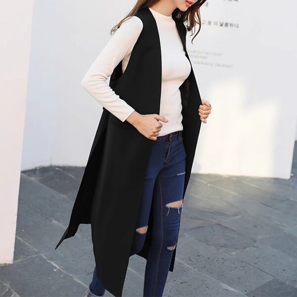 カジュアルベストジャケット レディース トップス ジャケット カーディガン ベスト アウター ジレ ロング ノースリーブ Vネック 襟なし ノーカラー ワイド ストレート アシンメトリー 裾ワイド ストリート スリット ポケット 大人可愛い カジュアル おしゃれ かっこいい ラフ ガーリー ルーズ オフィスカジュアル 無地 春 秋 20代 30代 通勤 イベント ガーデン カフェ 普段使い 着回し ゆったり ゆったりウエスト