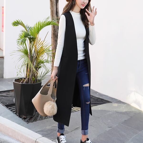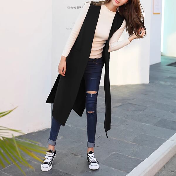 ラフなジャケットスタイルを完成させるロングベスト。Vネックとスリットデザインがアクセントになっています。春と秋に最適な着心地。お仕事やお出かけの際に、シンプルなインナーにコーディネートしてお洒落に決めることができる一枚です。デイリーコーディネートに取り入れれば、おしゃれ度がぐんとアップします。