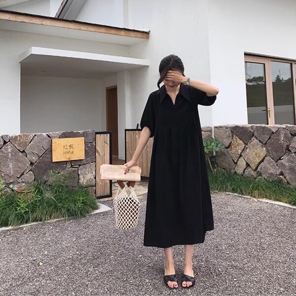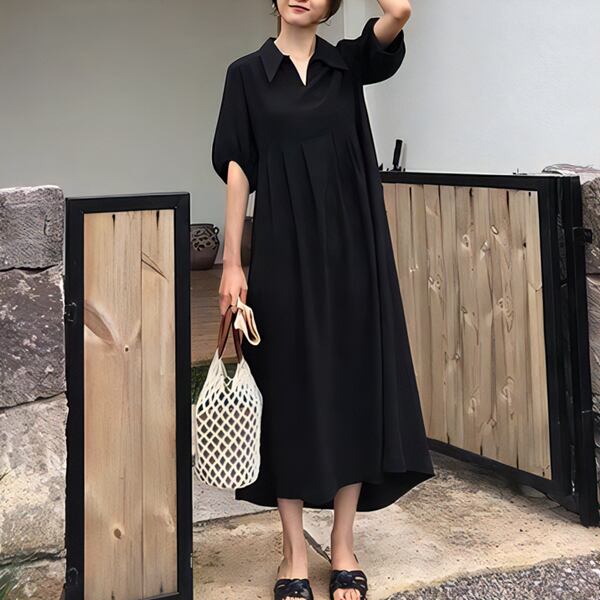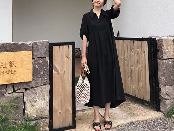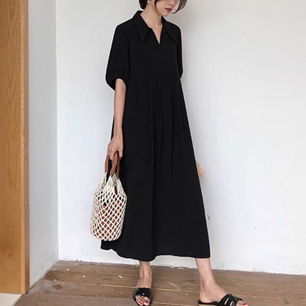 マタニティサマードレス レディース ワンピース ドレス マタニティウェア フレアスカート ロングスカート 膝下 ロング 半袖 バルーン袖 Vネック ポロカラー ワイド Aライン フェミニン ふっくら かわいい 大人可愛い カジュアル 上品 おしゃれ レトロ ガーリー ルーズ ラブリー 涼しげ 無地 夏 20代 30代 お出かけ イベント 公園 ショッピング カフェ 体型カバー 着瘦せ お腹カバー 大きいサイズ ゆったり 大きめ ゆったりウエスト