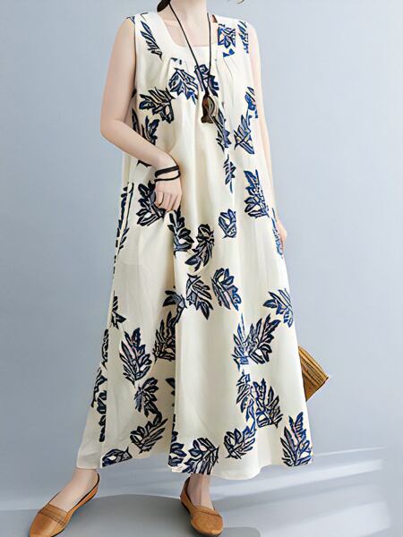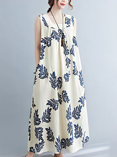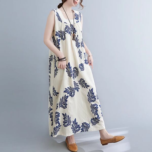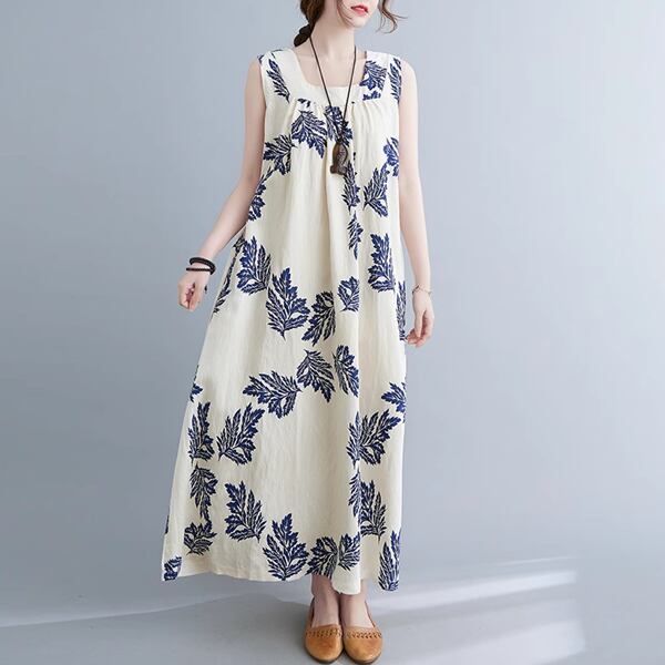 リゾート気分が味わえる、涼しげなロングドレス。花柄プリントエスニックな雰囲気を演出。ゆったりとしたルーズなノースリーブデザインで、夏の暑い日でも涼しく快適です。南国を思わせるデザインが、日常の中にちょっとした優雅さをプラスしてくれます。リゾート気分を感じながら、おしゃれを楽しむなら一押しです。