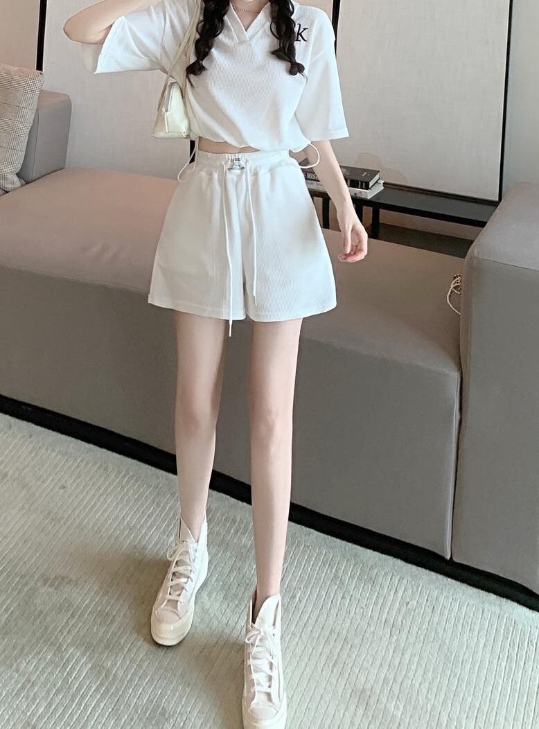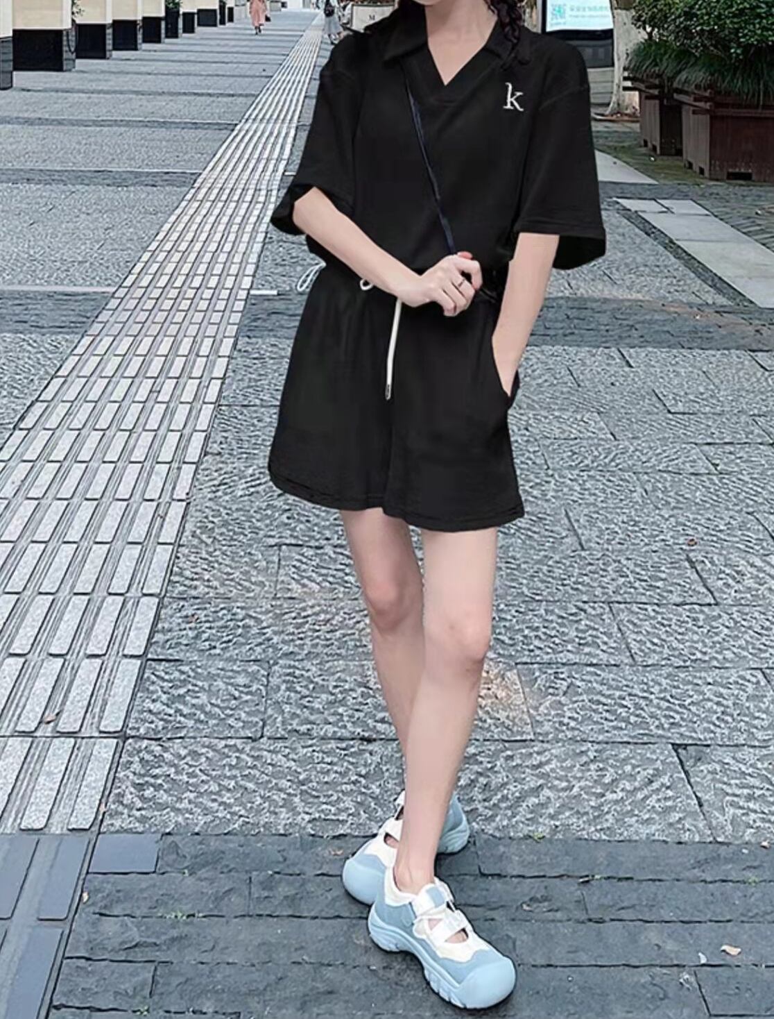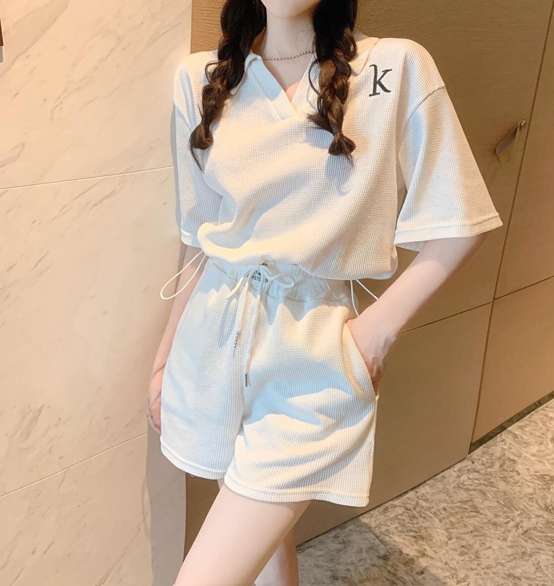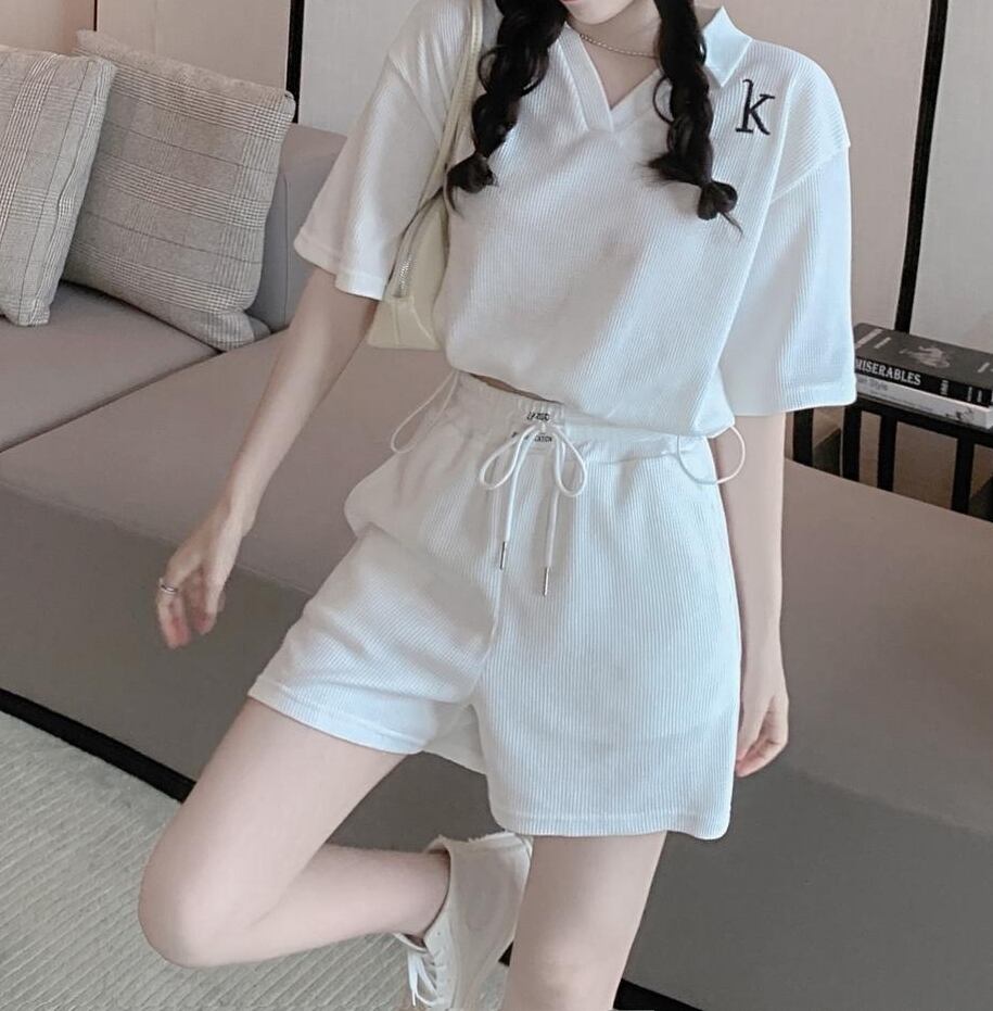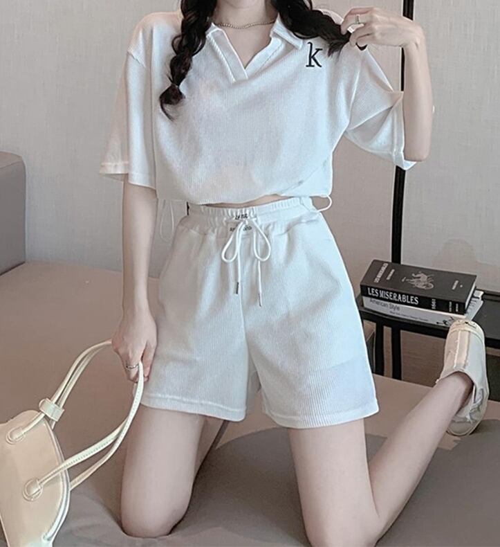 二点セット 上下セット ツーピース レディース ルームウェア プルオーバー セットアップ ポロシャツ ショートパンツ ショート 5分袖 Vネック ポロカラー ストリート ポケット ハイウエスト ウエストゴム ドロスト 伸縮性 柔らかい シンプル カジュアル ラフ スポーティー 都会的 涼しげ ワンポイント 夏 10代 20代 お出かけ リゾート 海 ビーチ ジム 高原 スポーツ 楽ちん 普段使い S M L XL ゆったり ホワイト ブラック