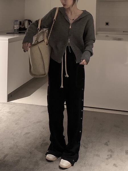3色展開 フード付きダブルジッパーショートジャケット レディース トップス ジャケット ニット カーディガン ショート 長袖 フード ストレート タッセル ストリート ヒップホップ ファスナー ダブルジッパー 綿 ニット 大人可愛い カジュアル おしゃれ かっこいい こなれ感 ルーズ 痩身 無地 春 秋 10代 20代 通勤 アウトドア キャンプ イベント ガーデン ライブ ツーリング コーデ 着回し ゆったり