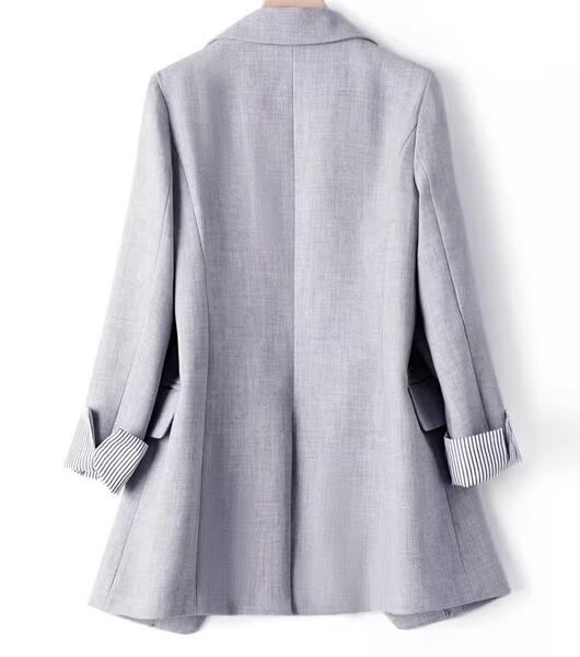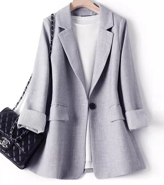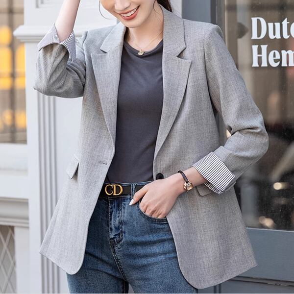 カジュアルスタイルのジャケット。韓国スタイルデザインで、痩身効果も期待できるシルエット。ミッドレングスの丈感がフェミニンで、どんなコーディネートにも合わせやすい万能な一着。オフィスやデイリーコーデにはもちろん、お出かけやパーティーにも活躍するアウターです。自信を持って着こなしてください。