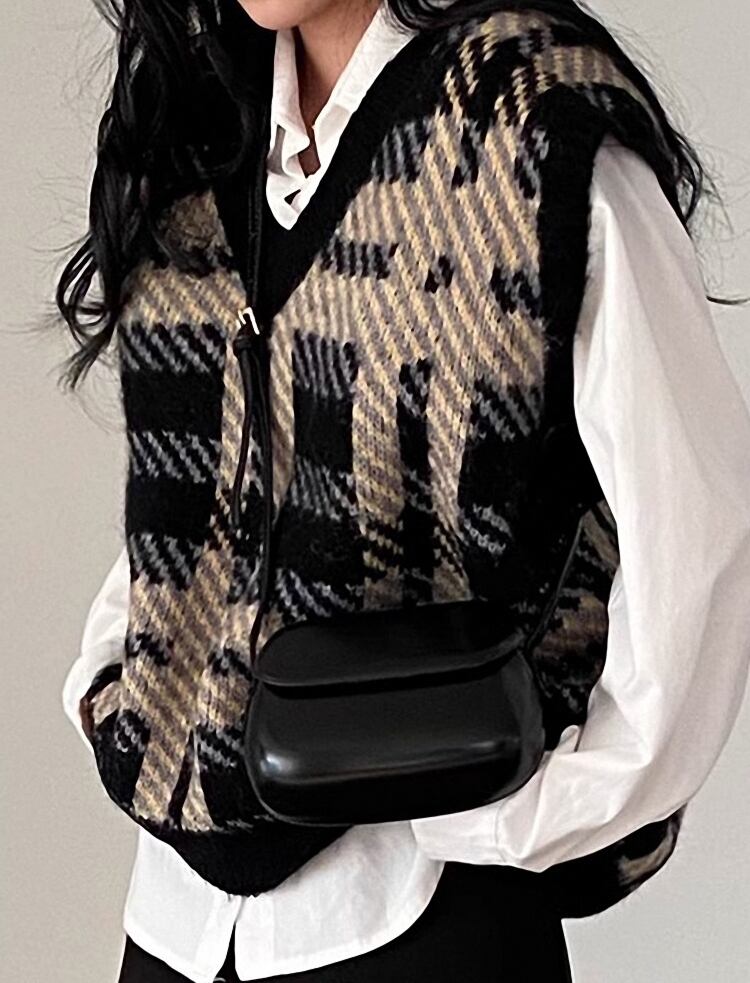 カレッジ風デザインのチェック柄ベストです。