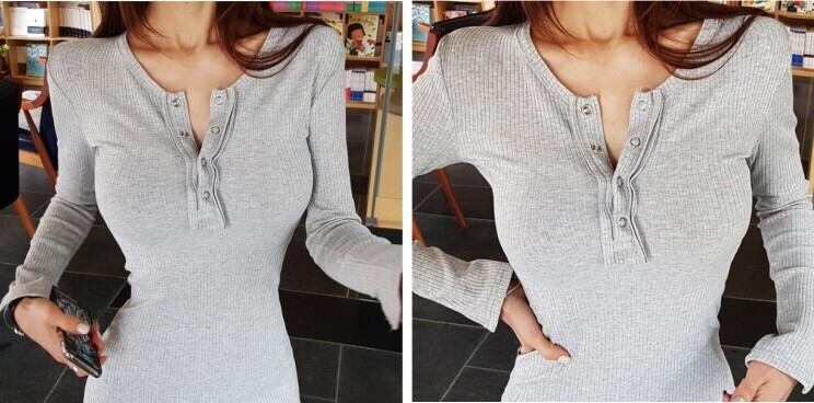レディース ワンピース ニット プルオーバー ミモレ 長袖 襟なし スキッパー タイト スリム 細身 サイドスリット ハイウエスト ボタン コットン ニット シンプル ラフ スタイリッシュ 無地 秋 20代 30代 40代 お出かけ 休日 楽ちん S M L ブラック グレー