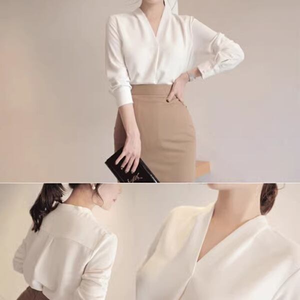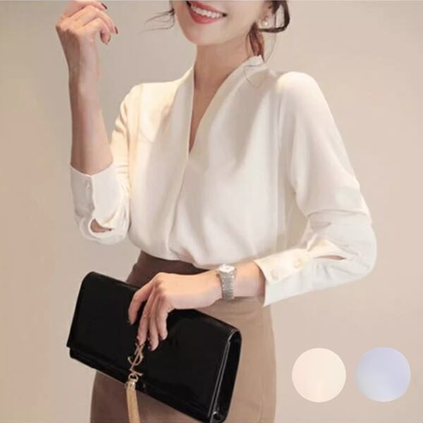 2カラー 高織りドレープのVネックシフォンシャツ レディース トップス シャツ ブラウス 長袖 シフォン 春 秋 ドレープ Vネック 襟なし ノーカラー スリム 大人可愛い きれいめ カジュアル 上品 おしゃれ ガーリー クール エレガント フォーマル 清潔感 爽やか オフィスカジュアル 無地 20代 30代 オフィス 通勤 イベント レストラン ショッピング コンサート コーデ