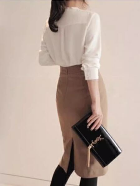エレガントな雰囲気、高織りドレープのVネックシャツ。シフォンならではの柔らかさと軽さで、女性らしい上品さを演出します。ノーカラーでスリムなデザインが大人可愛くさりげないエレガンスを纏える一枚。オフィスカジュアルからイベントコーデまで、幅広く活躍します。気品漂う一着です。