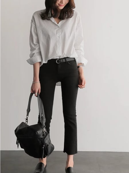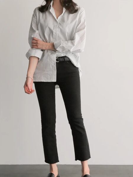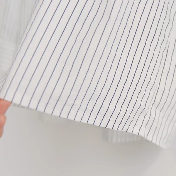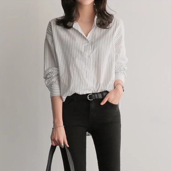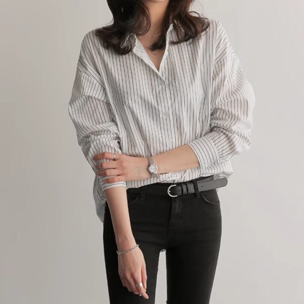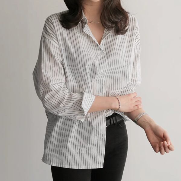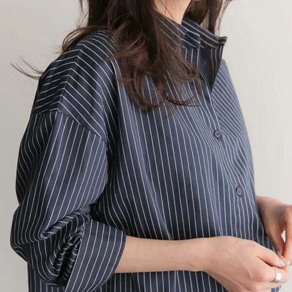 大胆なのに女性らしいストライプデザイン、ボーイフレンドスタイルの長袖シャツ。ポロカラーでクラシカルな雰囲気です。ショッピングや女子会、またオフィスや通勤時にもオススメです。ジャケットやカーディガンとのレイヤードスタイルもgood。大人可愛いスタイリングが叶います。