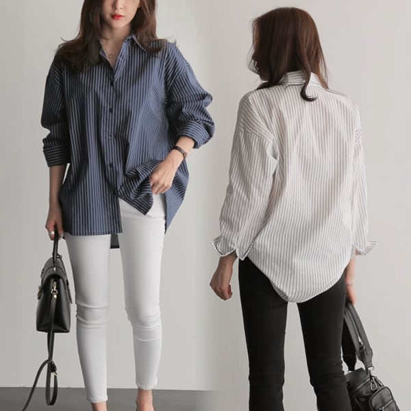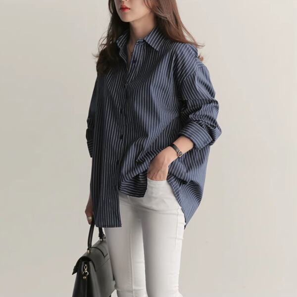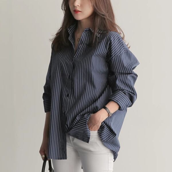 2カラー ボーイフレンドスタイルストライプ長袖シャツ レディース トップス シャツ ブラウス セミフレア オーバーサイズ ポロカラー ストレート ミドル丈 長袖 ストライプ ボタン 大人可愛い きれいめ カジュアル 上品 おしゃれ ラフ ボーイッシュ ガーリー ルーズ 清潔感 オフィスカジュアル 春 秋 20代 30代 オフィス 通勤 通学 アウトドア イベント 女子会 ショッピング ライブ 合コン ツーリング